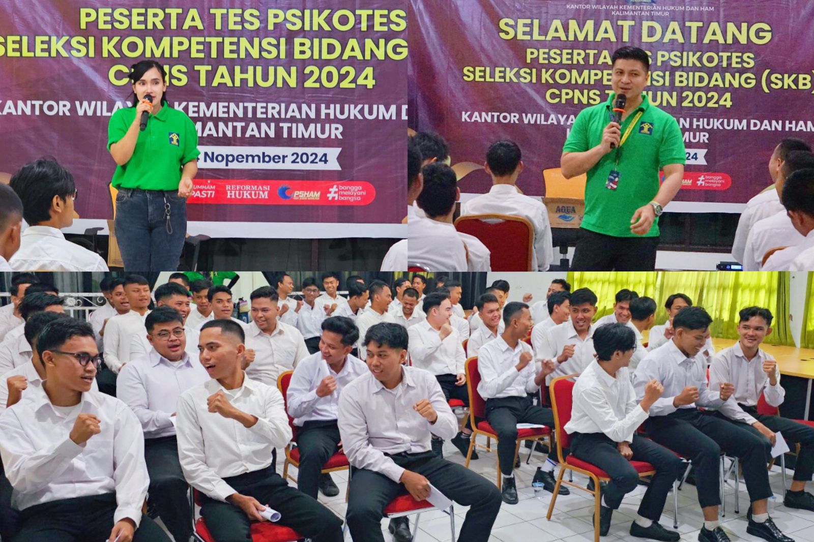 Samarinda - Menapaki hari terakhir diakhir pekan, minggu (24 November 2024) Seleksi Kompetensi Bidang (SKB) Tes Psikotes Calon Pegawai Negeri Sipil (CPNS) Kementerian Hukum dan HAM Kalimantan Timur, Sebanyak 180 peserta dijadwalkan mengikuti tes dengan penuh semangat dan harapan. Pelaksanaan tes psikotes hari ini terbagi menjadi 4 (Empat) sesi waktu.